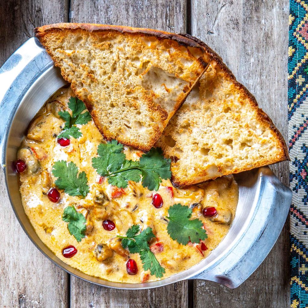 Сочные мидии, обжаренные с болгарским перцем, чесноком и острым чили, в нежном сырном соусе с майонезом