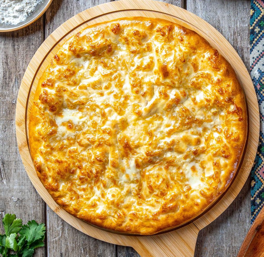 Тонкое тесто, внутри — расплавленный сулугуни, который тянется за каждым кусочком. А сверху — ещё один щедрый слой сыра, запечённый до румяной хрустящей корочки. Внутри нежно и тягуче, снаружи — аппетитный хруст. Мегрельский хачапури — он такой