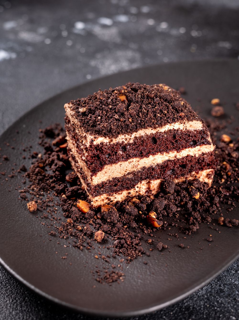 Тёмный шоколадный бисквит с нежным сливочным кремом